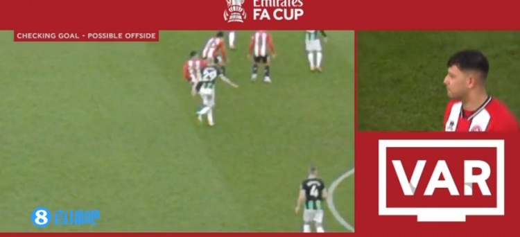 VAR回看威廉插上瞬间越位情况。↓
