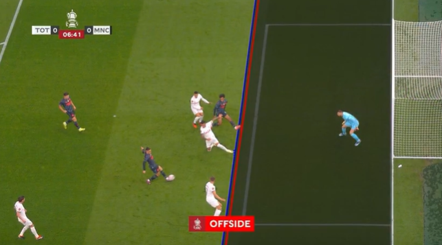 第5分钟,沃克右侧传中,阿尔瓦雷斯第一脚射门被封堵,鲍勃跟进补射破门,但边裁举旗示意越位在先进球无效,VAR介入后维持越位判罚↓