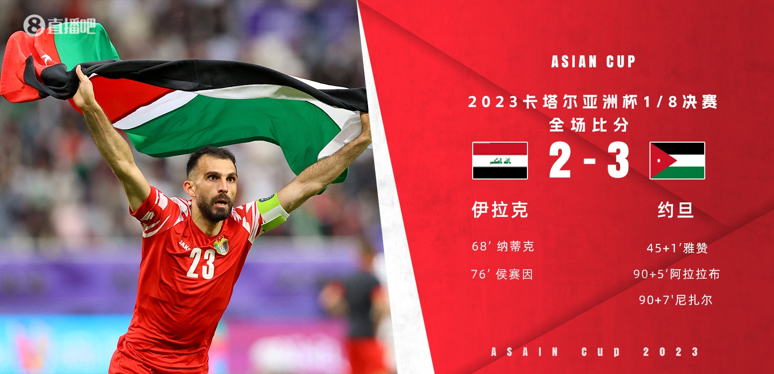 亚洲杯-约旦补时连进2球3-2绝杀伊拉克进8强 1/4决赛战塔吉克斯坦