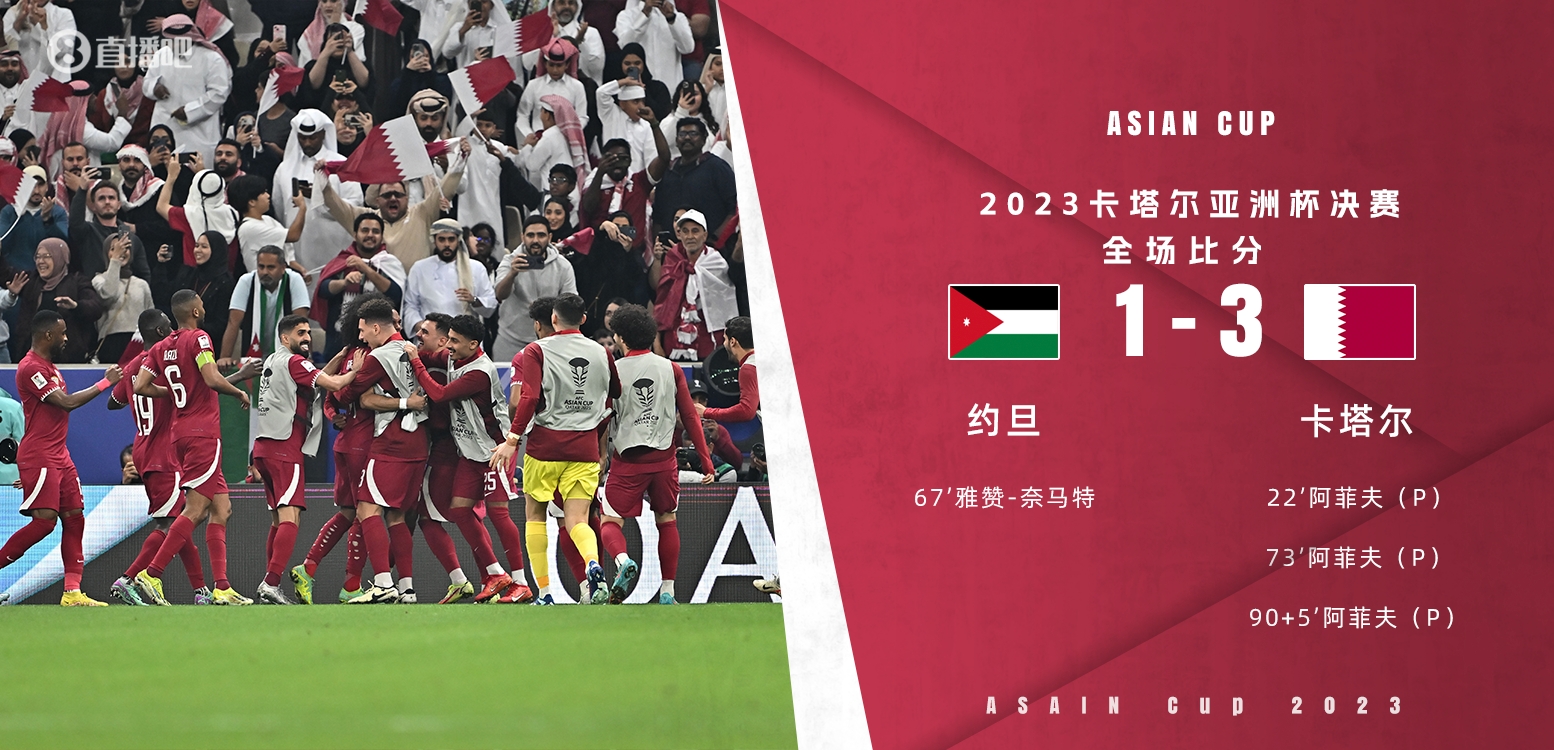 🏆东道主卡塔尔3-1约旦卫冕亚洲杯!马宁3次判点阿菲夫点射戴帽