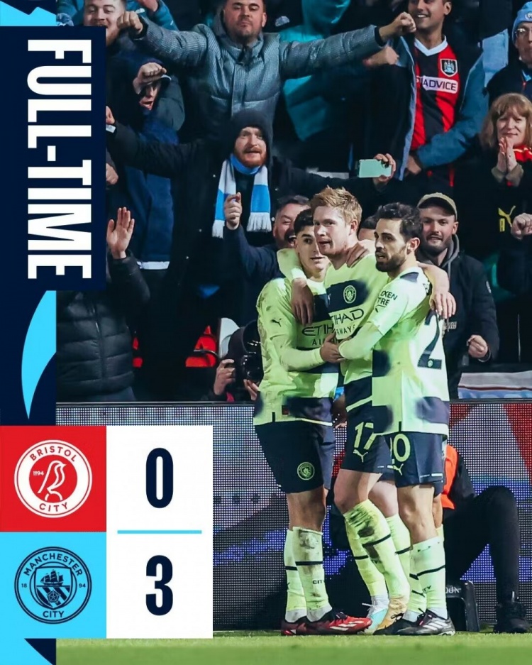 足总杯-福登双响德布劳内远射破门 曼城客场3-0布里斯托城晋级