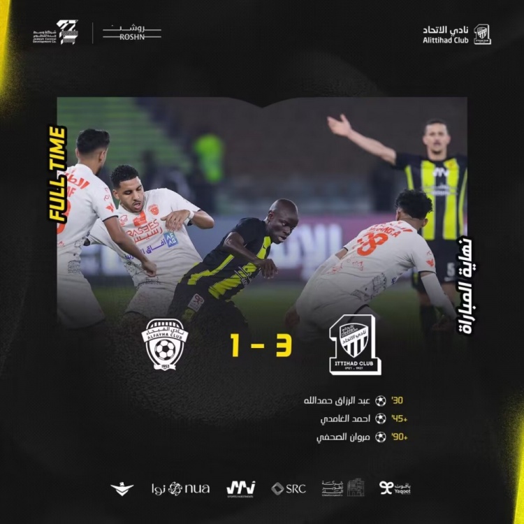 第93分钟,吉达联合杀死比赛!哈姆达拉直塞球萨哈菲单刀机会推射破门,吉达联合3-1费哈。↓