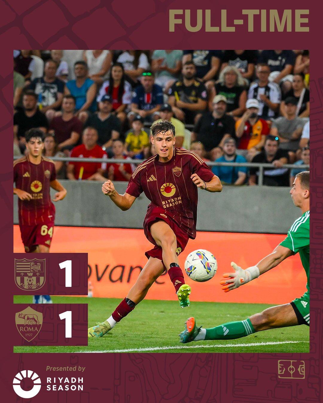 本场比赛在科希策新落成的主场进行,迪巴拉因回国举行婚礼请假,亚伯拉罕和斯莫林因身体不适缺席。罗马主帅德罗西继续使用4231阵型,新援勒费和桑加雷首发,瑞恩下半场替补出场。