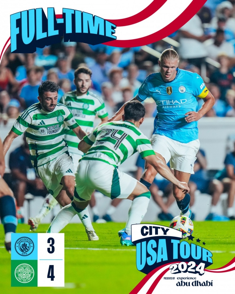 友谊赛-鲍勃2传1射哈兰德破门 曼城3-4凯尔特人