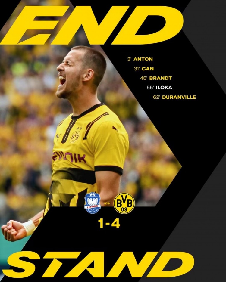 下半场没有补时,凤凰吕贝克1-4多特。