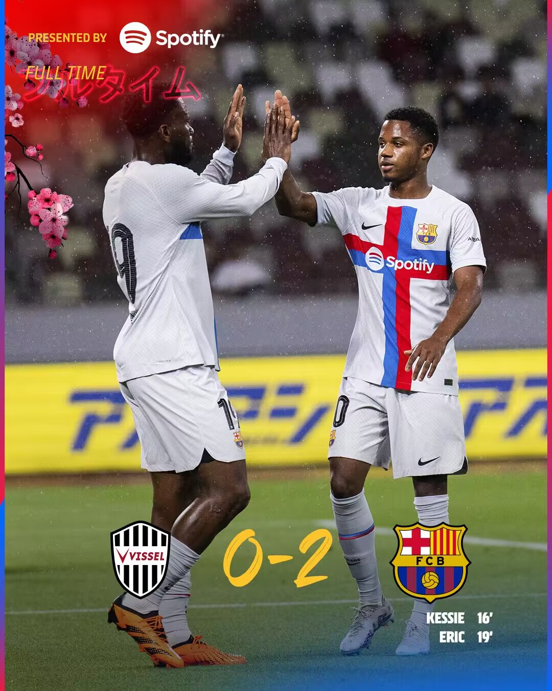 第15分钟,托雷送出精准直塞,凯西禁区内冷静推射得手,神户胜利船0-1巴塞罗那!↓
