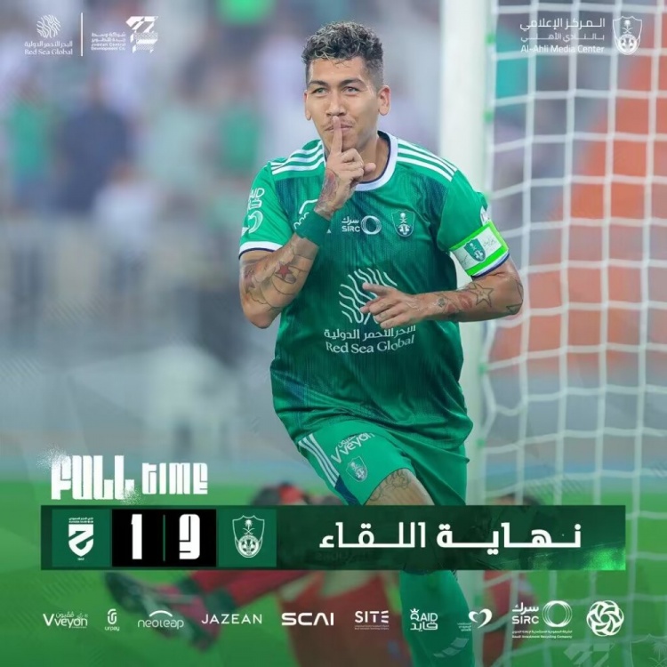 第73分钟,圣马克西曼左路传中,菲尔米诺头球攻门被扑出,自己跟上补射破门!吉达国民3-1哈森姆↓