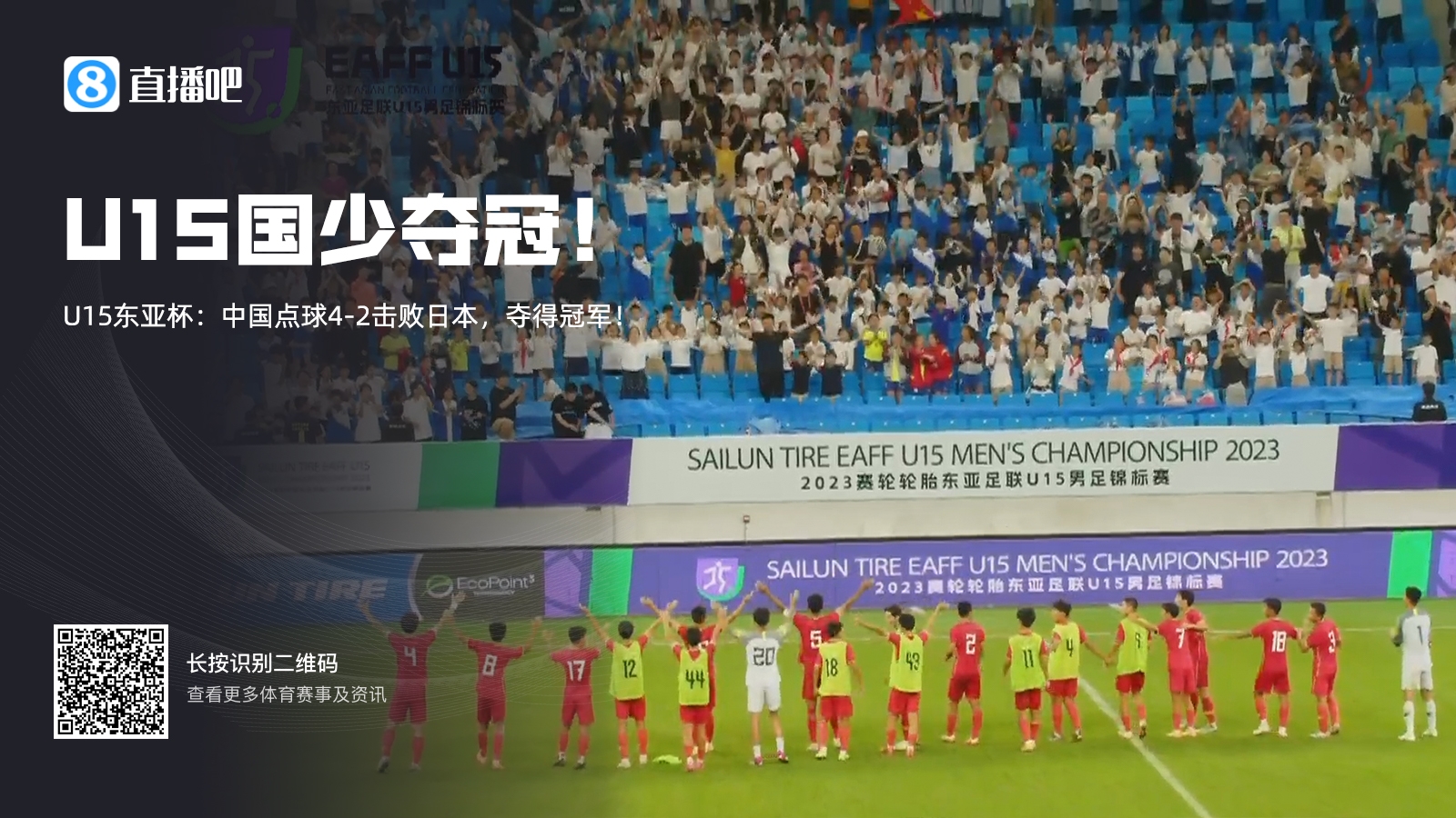 直播9月8日讯 北京时间9月8日晚上19:00,U15男足东亚杯决赛,中国U15vs日本U15。上半场,国少开局失单刀,门将章琮玺力保球门不失。下半场,王一、杨硕造险。点球大战,章琮玺2次扑点立下大功。全场结束,U15中国4-2击败日本U15,夺得冠军!