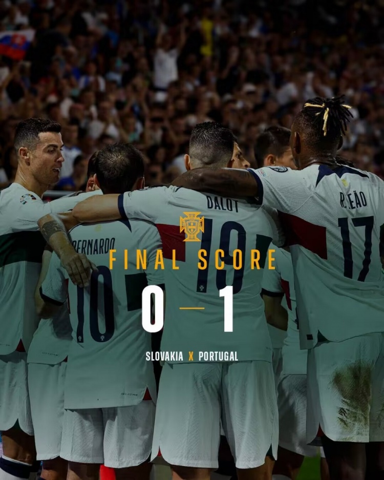 欧预赛-葡萄牙1-0斯洛伐克5连胜领跑 B费制胜C罗染黄无缘下轮