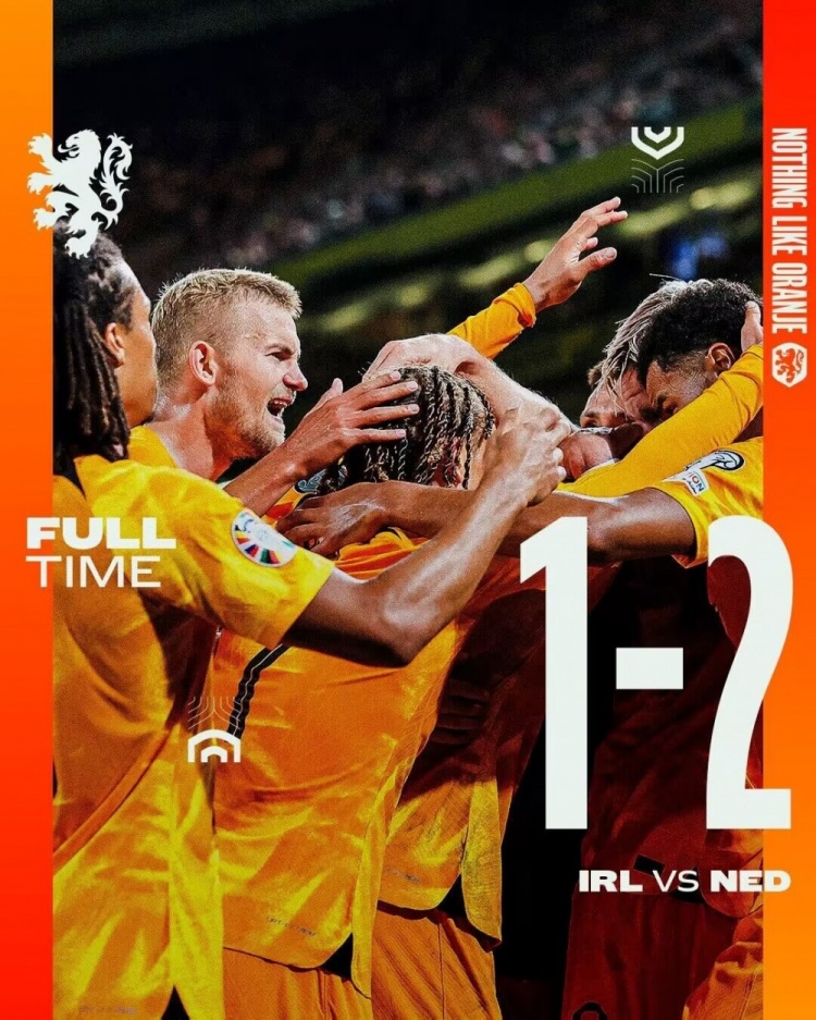 9月11日讯 北京时间9月11日凌晨2:45, 欧预赛B组第6轮,荷兰客场对阵爱尔兰。上半场,范迪克手球送点,伊达克点射破门为爱尔兰取得领先,邓弗里斯造点,加克波点射扳平比分!下半场,德容策动进攻,邓弗里斯助攻韦霍斯特破门反超比分!全场比赛结束,荷兰2-1爱尔兰!