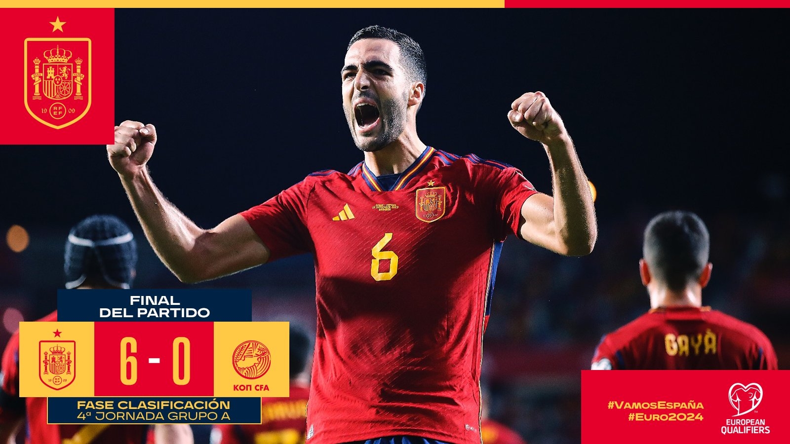 下半场伤停补时2分钟,全场比赛结束,最终西班牙6-0塞浦路斯。